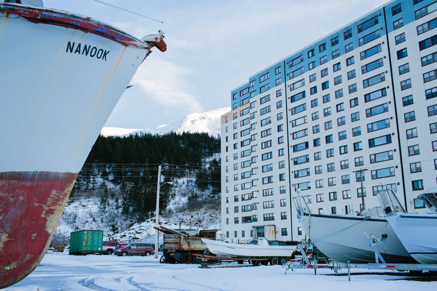Paul Frederickson is one of the few residents of Whittier who doesn't live in the Begich building. He stays in an RV parked behind the Anchor Inn, the only bar and restaurant in Whittier open year round. Of his RV, Paul said, "It ain't goin' nowhere."